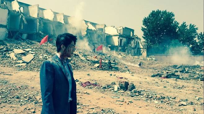 권상우는 현재 중국 내 최고의 기대작 드라마 ‘돌아온 사랑’의 주인공 송진남 역에 분해 촬영에 한창이다. 그런 가운데 폐허가 된 현장에서 피를 흘린 채 멍하니 서있는 촬영 컷이 공개되어 눈길을 모은다.