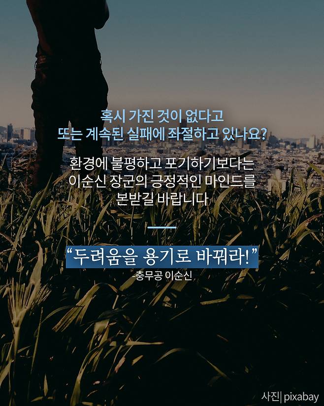 환경에 불평하고 포기하기보다는 이순신 장군의 긍정적인 마인드를 본받길 바랍니다.