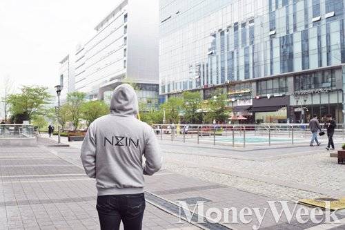 | 카카오 계열사 엔진의 직원이 회사에서 지급한 후드를 입은 모습. /사진=진현진 기자 |