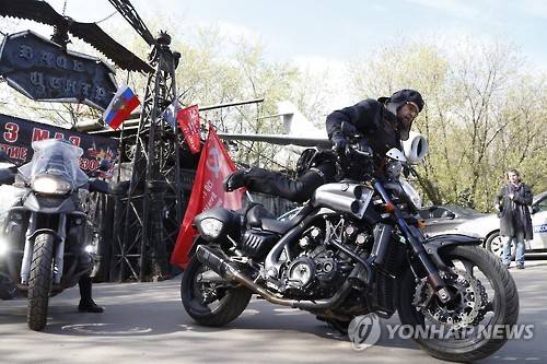 epa05282331 Alexander Zaldostanov, leader of the Russian motorcycle club the Night Wolves and his club-mates start their rally from Moscow to Berlin 'Victory Roads - to Berlin' from Bike Center in the Lower Mnevniki street in Moscow, Russia, 29 April 2016. The annual 'Victory Roads - to Berlin' motorcycle rally marking the 71st anniversary of victory over the nazi Germany in WWII lasts for 14 days and covers 6,000 km. EPA/MAXIM SHIPENKOV