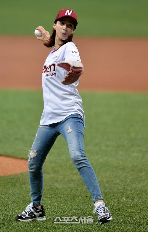경기시작에 앞서 뮤지컬배우 린아(32)가 멋지게 시구를 하고 있다. 2016.05.01.