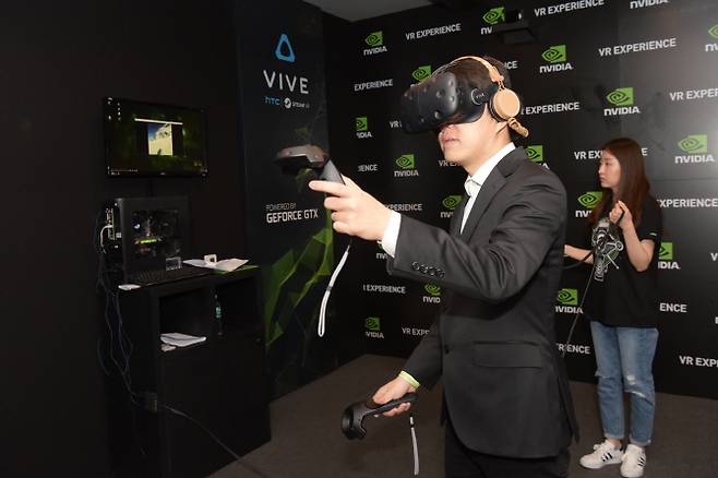 엔비디아는 HTC 바이브(Vive), 오큘러스 리프트(Oculus Rift) 등과 협력해 고성능 지포스 GTX GPU 기반 시스템을 바탕으로 총 네 개의 지포스 VR 체험관을 운영했다.