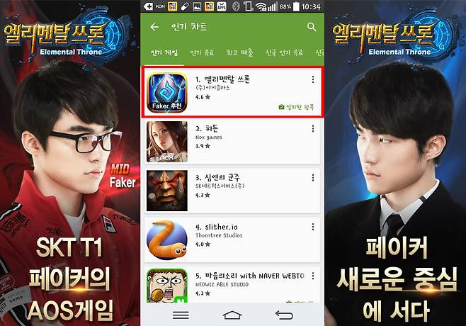 모바일 AOS게임 '엘리멘탈쓰론' 양대 마켓 인기순위 1위 달성