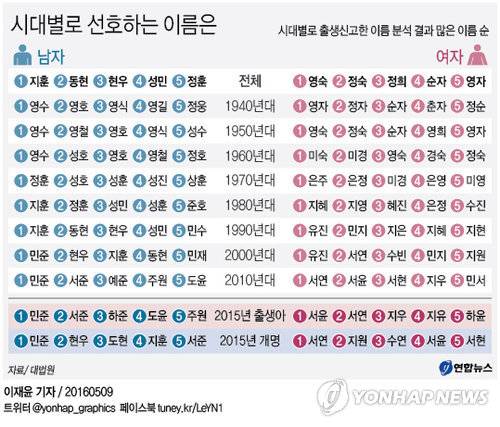 시기별 선호이름..1940년대 영수·영자에서 2010년대 민준·서연