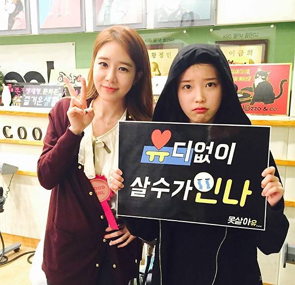 절친의 돈독한 우애가 돋보였다. 아이유는 직접 피켓을 들고 막방을 앞둔 언니를 위로했다. 유인나는 환한 미소로 브이를 그리며 화답했다.