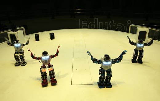 | 싸이의 강남스타일 노래에 맞춰 춤을 추는 로봇 ‘로보노바’의 모습. 정교한 움직임은 어른과 아이 할 것 없이 모두의 시선을 사로잡는다. |
