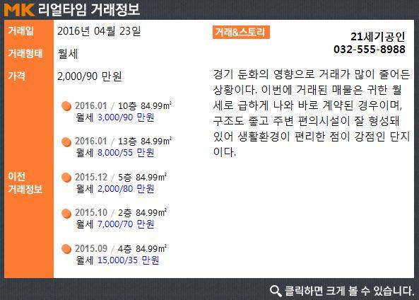 [실시간 거래]생활환경 편리.. 인천 계양구 박촌동 '박촌풍림아이원', 월세 2,000만 원/90만 원 거래 완료