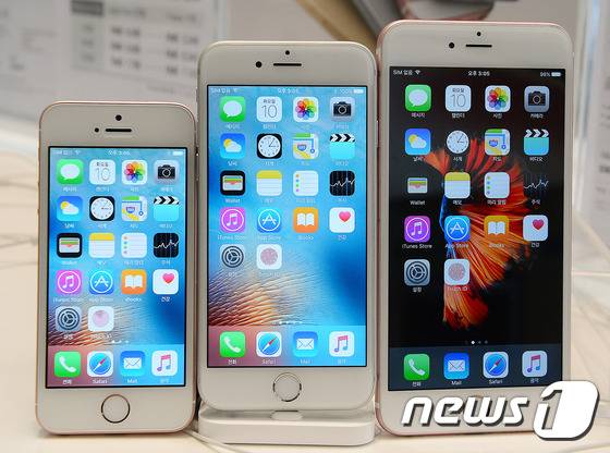 애플이 출시한 보급형 스마트폰 아이폰SE(iPhone SE)는 아이폰6S의 핵심 기능을 갖추고 기존 고객들이 선호하는 컴팩트한 알루미늄 디자인을 유지하며 4인치 레티나 디스플레이에 로즈 골드를 포함한 4가지 색상, 64비트 A9칩과 1,200만 화소의 카메라, 4K 영상 촬영, 터치ID 등을 탑재했다. 애플코리아가 홈페이지를 통해 공개한 아이폰SE 언락폰의 가격은 16GB 모델이 59만원, 64GB 모델이 73만원이다. 사진 오른쪽부터 아이폰6S플러스, 아이폰6S, 아이폰6SE. 2016.5.10/뉴스1