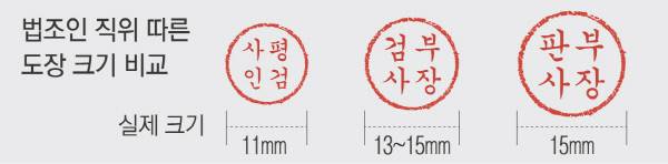 도장은 법조계의 ‘유일한 사치’이자 엄격한 서열의 상징이기도 하다. 검찰에서는 상관일수록 결재 서류에 찍는 도장 크기가 커진다. 평검사의 도장 지름은 11㎜ 이하, 부장검사는 13~15㎜ 등 크기가 불문율처럼 정해져 있다. 법원도 검찰만큼 엄격하진 않지만 비슷한 문화가 있다. ‘배석이나 하급 판사는 부장판사 도장보다는 작아야 한다’는 것이다. 부장판사들은 통상 지름 15㎜ 도장을 쓴다.