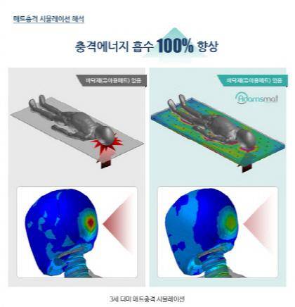 (주)씨에이이테크놀러지의 '아담스매트'는 국민체육진흥공단 매트충격 안전시험 결과 기존 제품들의 평균치보다 충격흡수 능력이 100% 이상 향상된 것으로 밝혀져 기존 영유아매트보다 2배 이상의 안전성을 확보하고 있다.