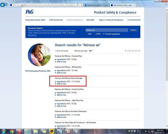 아~ <페브리즈 에어>의 영문 상품명은 구나~이런 작은 깨달음을 얻으며,페브리즈 에어 제품 성분을 확인하러 갑니다. 클릭.155KB짜리 PDF 파일로 제공되는 성분 정보가 눈 앞에 뜹니다.