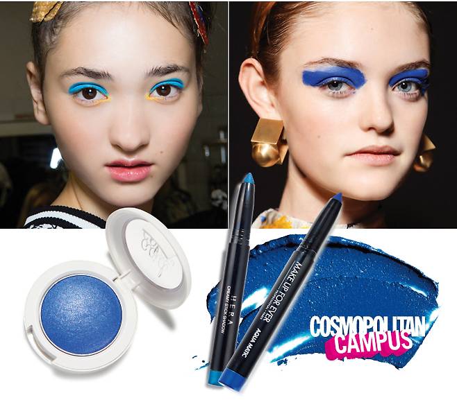 Blue Eyed Girls맑고 청량한 터콰즈 블루, 한없이 부드러운 세레니티, 깊고 푸른 바다를 닮은 딥 블루까지, 이번 시즌 백스테이지에서 다양한 블루 컬러가 목격됐다. 한 가지 주목할 점은 저마다 선택한 블루 컬러는 달라도 모양은 면이 아닌 선을 활용해 위트 있게 연출했다는 것. 덕분에 자유분방하고 밝은 블루 컬러 특유의 무드를 마음껏 즐길 수 있게 됐으니 마음이 가는 대로 슥슥 그어 본인만의 블루 룩을 즐기면 되겠다. 가장 쉬운 방법은 아임 이솔라 마라스 쇼처럼 도톰하게 라인을 그리는 것. 비블로스 쇼처럼 눈꼬리 부분에만 사인펜으로 슥 그은 듯 짧고 강렬하게 컬러를 더하는 것도 좋다. 과감한 터치에 도전하고 싶을 땐 터프한 터치가 매력적인 미쏘니 룩이 베스트! 이때 눈두덩 중간 부분부터 눈꼬리 방향으로 라인을 그리는데, 층을 쌓아 올리듯 가늘게 여러 번 겹쳐 그려 꼬리 부분만 텍스처를 터프하게 마무리해 리얼웨이 버전으로 연출하자.로라 메르시에 크렘 아이라이너 커나드 3만2천원.