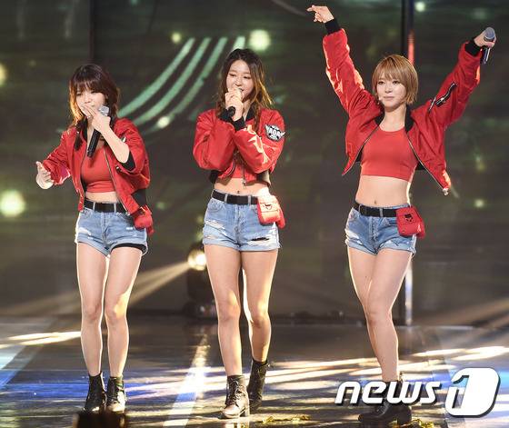 (일산=뉴스1스타) 고아라 기자 = 에이오에이(AOA) 지민, 설현, 초아(왼쪽부터)가 25일 오후 경기도 고양시 일산동구 장항동 MBC드림센터에서 열린 MBC MUSIC '쇼 챔피언'(쇼챔) 현장공개에서 쇼챔피언 1위 수상 후 앙코르 무대를 선보이고 있다.