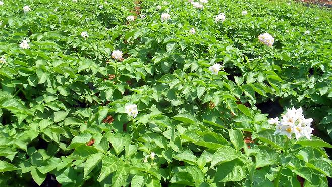 | ▲ 5월 말에 감자꽃이 흐드러지게 핀 우리 감자밭입니다. |