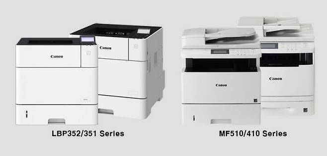 캐논은 A4 흑백 프린터·복합기 신제품 라인업으로 레이저 프린터 LBP352/351시리즈와 다기능 복합기 MF510/410시리즈를 공개했다. LPB352/351시리즈는 LB352x, LB352xz, LB351x, LB351xz4종으로 구성돼 있으며, MF510/410시리즈는 MF515dw, MF515dwz, MF419dw, MF416dw 4종으로 라인업을 맞췄다.