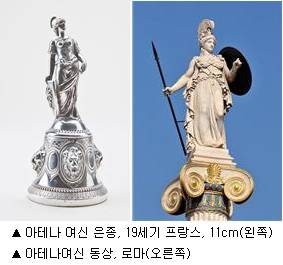 지혜를 상징하는 '미네르바의 부엉이'와 함께하는 미네르바는 로마의 여신이다. 그리스 신화에서는 지혜의 여신, 그리고 전쟁, 직물, 요리, 도기, 문명의 여신인 아테나가 해당된다. 아테나는 제우스와 그의 부인 메티스 사이의 딸이다. 대지의 여신 가이아가 메티스의 자식이 태어나면 신들을 위협할 것이라 예언하자, 제우스는 아테나를 임신하고 있던 메티스를 삼켜버렸다. 몇 달이 지나자 제우스는 심한 두통에 겪는다. 제우스는 심한 통증으로 대장장이의 신 헤파이스토스에게 도끼로 자신의 머리를 쪼개라고 부탁한다. 제우스의 머리가 갈라지자 아테나가 튀어나왔다. 이미 다 자란 모습으로 갑옷을 입고 손에 창을 쥔 무장 상태에서 소리를 지르며 탄생하였다. 그러므로 아테나는 올림포스 산 정상에서 사는 그리스 판테온의 주인공인 올림포스 12신들 중 두 번째(자식) 세대에 속한다. 지혜를 상징하는 머리에서 태어났으므로 아테나는 지혜의 여신인 것이다. 투구, 갑옷, 창, 메두사의 머리가 달린 가죽 방패인 아이기스, 올빼미, 뱀이 아테나의 상징물이다. 그녀의 그림이나 조각품은 항상 완전 무장한 여전사의 모습이다. 아테나는 전쟁의 여신이기도 하다. 그녀는 전차 모는 방법과 병법도 개발하였고, 각종 무기들도 만들었다. 병사들을 위한 춤과 노래도 만들었다.