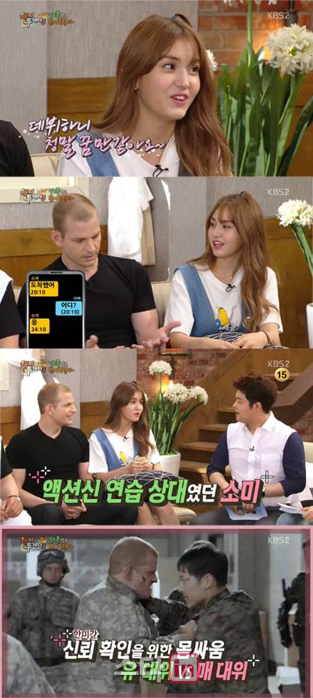 이어 매튜는 MC들에게 드라마 ‘태양의 후예’에 출연했던 것에 대한 질문을 받자 “송중기와 액션신을 찍었다”고 답했다.