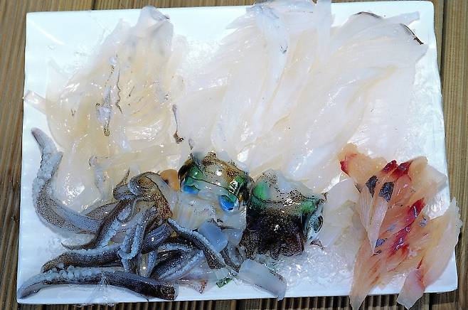 우선 꼴뚜기과에 속하는 무늬오징어는 활발하게 헤엄치며 사는 유영성인 반면 갑오징어과에 속하는 갑오징어는 개펄 바닥에 붙어사는 저서성이다.