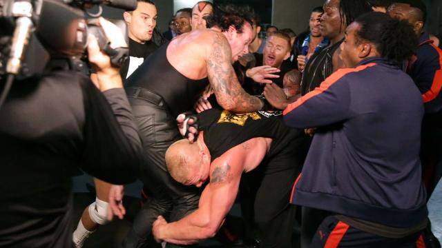 | ▲ 브록 레스너와 언더테이커의 격렬한 대립 |