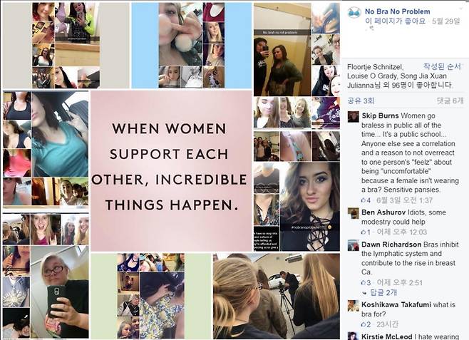 | ▲ 페이스북에 개설된 '노 브라 노 프라블럼(No Bra No Problem) 페이지 갈무리. |