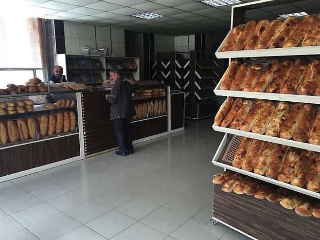 한참을 걷다가 그냥 포기하고 숙소에서 밥이나 안쳐서 먹어야겠다고 돌아가는 데, 숙소 바로 앞에 빵 가게가 있었다. 화려한 베이커리가 아니라 만화영화 <플란다스의 개>에서 보던 딱 그런 빵 가게였다. 터키인들은 주식이 빵이다. 식당에서도 요리를 주문하면 에크멕(Ekmek)이라고 부르는 빵은 무제한으로 제공된다. 동네 식당에서는 그냥 식탁 위에 쌓여 있다. 호텔 사장님도 밥은 먹어야 하니까 빵집은 있나 보다 싶었다.