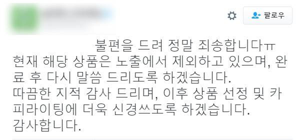 해당 온라인 쇼핑몰은 즉각 해당 상품을 노출에서 제외하고 있고 앞으로 상품 선정과 카피라이팅에 신경 쓰겠다고 밝혔습니다.