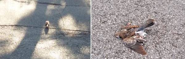길 위에서 모이를 쪼아 먹던 산비둘기를 찍고 나서는 어찌 위태롭다 싶어 밤새 불안했는데 아침에 가보니 로드킬 당해 있었다고 했다. 모이를 쪼아 먹는 모습을 찍으며 길 위에서 식사라는 디카시를 쓸 수 있었는데, 다음 날엔 죽은 비둘기를 길 옆 푸른 대밭에 묻어주고 '구암리에서 조문'이라는 디카시를 썼다고 했다.
