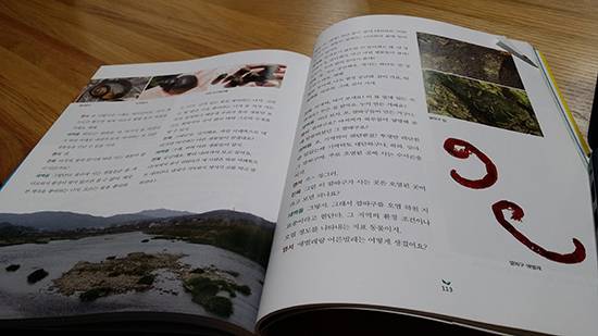 진욱 : 아저씨, 여기 보세요! 이 돌 밑에 있는 게 뭐예요? 무슨 집 같아요. 누가 만든 거예요?오염 하천 지표종이 깔따구라니. 이렇게 확인하고 나니 우리 강이 4대강 사업으로 얼마나 오염되었는지 금방 알 수 있다. 아이의 호기심 따라서 책을 읽었다. 사진 속 아시아실잠자리의 짝짓기 모습을 보니 신기하게도 하트모양이다. 자연 속에서 이런 모습을 보면 얼마나 감동스러울까.