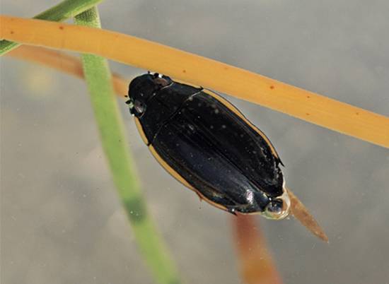 | ▲ 왕물맴이 : 배 끝에 공기 방울을 달고 다닌다. |