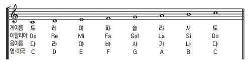 | [그림 2] 다장조의 음이름, 계이름 |