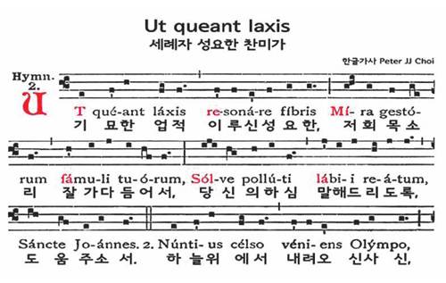 | [그림 4] 5선보로 옮겨 적은 성 요한 찬가 |