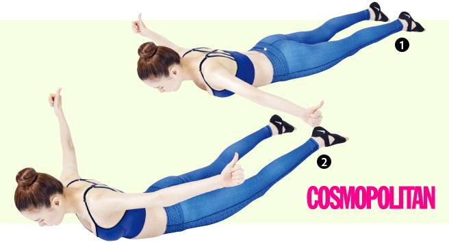 SUPERMAN POSE 1. 양팔과 양다리를 앞뒤로 쭉 뻗어 바닥에 엎드린다. 2. 숨을 내쉬면서 팔과 다리를 동시에 들어 올린다.3. 팔꿈치를 엉덩이 쪽으로 당기며 상체를 좀 더 들어 올려 팔이 바닥과 수평을 이루는 W자가 되도록 한다. 팔꿈치를 당길 때 등 근육이 자극되는 것을 느끼며 운동할 것.