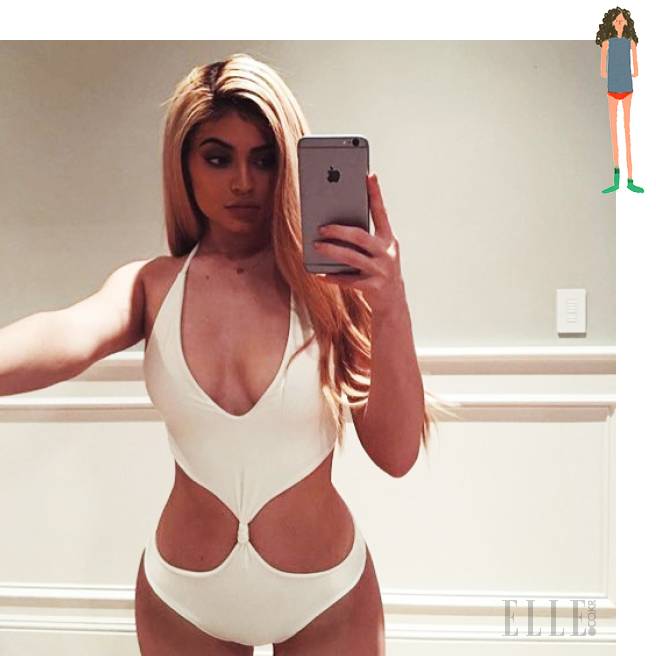프티 걸이라면키가 작은 카일리 제너의 완벽한 s라인을 완성하는 아이템은 모노키니. 모노키니는 허리가 잘록해 보일 뿐 아니라 다리가 길어 보이는 착시효과를 준다.