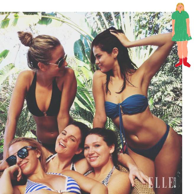 통통한 체형이라면슬림하게 보이고 싶다면 셀레나 고메즈의 SNS를 참고하자. 통통한 체형을 보안하기 위한 어두운 컬러의 비키니가 정답. 프릴, 레이스 비키니는 잘못하면 더 통통해 보일 수 있으니 피해야 한다.