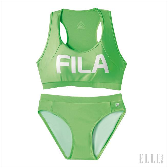 FILA 스포티한 무드의 네온 그린 컬러 비키니는 6만 8천원.