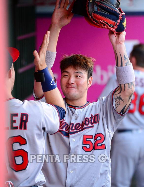 [포토] 승리 다짐하는 박병호 - MLB - 미네소타 VS 에인절스 (7)