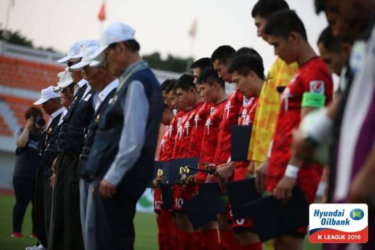 지난 19일 열린 경기서도 이와 같은 행사가 있었다. 이날 전남 드래곤즈전에 6.25 참전용사 상주지회를 초청한 상주는 경기 직전 상주 선수들이 참전 용사들의 가슴에 카네이션을 달아 주고 경례하는 등 군팀의 특징을 잘 살린 의미 있는 시간을 가졌다.