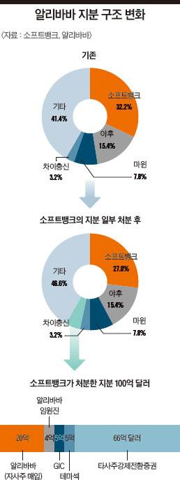 소프트뱅크가 이번에 처분한 100억달러 규모의 알리바바 주식 중 20억달러어치 주식은 알리바바가 자사주로 매입했고, 4억달러는 알리바바 임원으로 구성된 그룹에 매각했다. 이번 거래로 마 회장은 1.4%의 우호 지분을 더 확보하게 됐다.