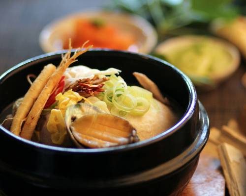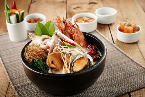 쉐라톤 서울 디큐브시티 호텔 41층에 위치한 피스트에서는 건강 보양식 ‘해천성연탕’을 내놓았다. 송이버섯, 능이버섯, 전복, 대하, 낙지, 중합, 인삼 등의 식재료와 더불어 마늘, 대추 등의 재료가 담백하면서도 건강한 맛을 자랑하며 한방에서 많이 쓰이는 약재인 황기도 첨가돼 있다. 작렬하는 뜨거운 여름의 더위에 지친 몸에 활력을 선사하기 충분하다. 피로 회복에 도움을 주는 대표 재료로 우려낸 담백한 국물과 부드러운 영계를 이용해 닭고기의 텁텁한 맛을 줄인 ‘해천성연탕’ 안에는 영양 가득한 밤, 은행, 대추, 인삼 그리고 찹쌀이 들어가 있어 푸짐하다.