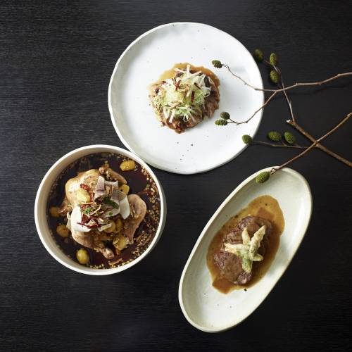 세트 메뉴 A는 오골계 참깨 소스 냉채, 단호박 오골계 스프, 해삼 동구 버섯 요리, 두치 소스 장어 구이, 광동식 소고기 안심 스테이크, 식사, 디저트의 총 7가지 코스로 구성되며, 세트 메뉴 B는 오골계 참깨 소스 냉채, 오골계 불도장, 해삼 송이 요리, 일품 전복 요리, XO 소스 장어 구이, 칠리소스 왕새우 구이, 식사, 디저트의 총 8가지 코스로 다채롭게 구성된다.