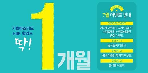 이와 더불어 시사중국어학원 7월 이벤트인 7, 8월 동시등록 이벤트는 단과강좌 등록 시 10%할인을 받을 수 있다. 이를 이용하면 더욱 저렴하게 중국어 공부를 시작할 수 있어 여름방학 중국어 공부를 계획하고 있다면 미리 확인해 두는 것이 유리하다.