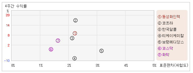 | 티케이케미칼 | 2.2% | -9.4% | -4.2 |