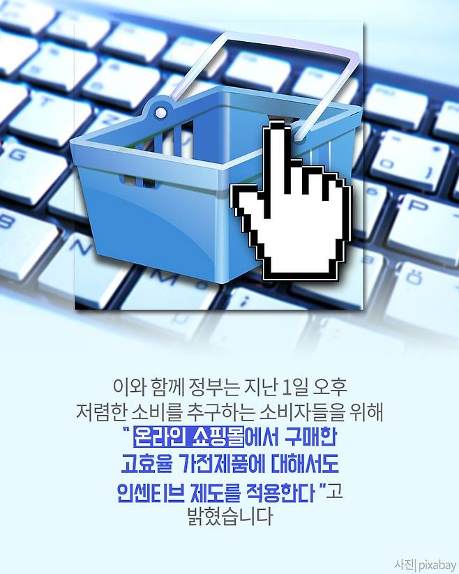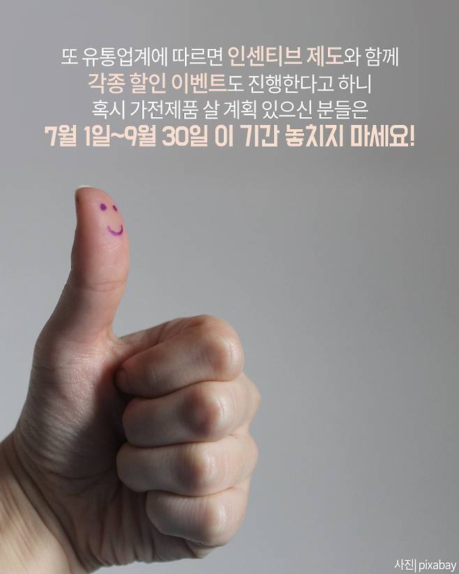 지난달 26일 정부는 국민들의 친환경 소비를 촉진하기 위해 7월 1일 부터 9월 30일 까지 고효율 가전제품 인센티브 지원 사업을 추진한다고 발표했습니다. 최대 20만 원까지 지원 받을 수 있다고 합니다. 그렇다면 고효율 가전제품 인센티브 지원은 어떻게 하면 받을 수 있는 걸까요?