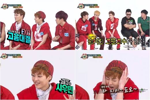 이와 달리 방송에서의 시우민은 말수가 적고 묵묵히 멤버의 이야기를 듣는 편. 2013년 방영된 MBC every1 ‘EXO's SHOWTIME’의 마지막화에서 이 부분에 대한 그의 속마음을 알 수 있다. 사실, 말도 많이 하고 재미있는 모습을 보이고 싶지만, 실수할까 말 한마디, 행동 하나하나가 조심스럽기 때문이라고. 성격인 부분도 있겠지만, 팀 내 맏형으로서의 책임감이 아닐까 생각해 본다.