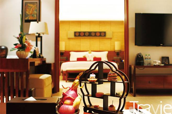 한밤중에 도착한 산야공항에서 호텔 셔틀을 타고 15분 만에 풀만 오션뷰 산야베이 리조트에 발을 디뎠다. 새벽시간의 피곤함이 온몸에 뚝뚝 묻어 나오던 아이들은 금방이라도 어디든 누워 잠들 기세. 서둘러 체크인을 하는 중 전달된 서프라이즈! 풀만에서 독자모델을 위해 스위트룸으로 객실을 업그레이드 해줬단 소식이었다. 잠들기 일보 직전이었던 아이들이 객실에 들어가 한동안 곳곳을 누비며 흥분했었다는 이야기를 다음날 아침에 전해들을 수 있었다.