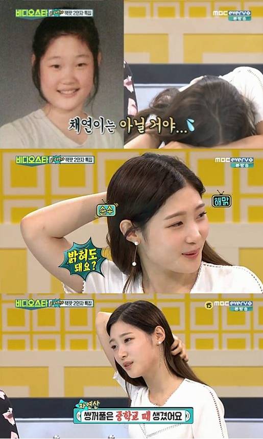 정채연은 지난 12일 첫 방송된 MBC 에브리원 예능프로그램 '비디오스타'에 출연해 입담을 뽐냈습니다. 이날 방송에서는 정채연의 과거 초등학교 졸업사진이 공개 돼 눈길을 끌었습니다.