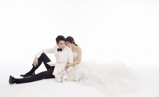 웨딩드레스와 턱시도 차림의 진연희, 진효는 웨딩 사진에서 서로의 어깨를 껴안거나 손을 꼭 잡으며 부부로서의 행복한 삶을 다짐하는 모습이다.