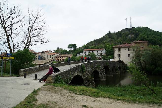 | ▲ 보행자 전용 다리에서 휴식을 취하고 있는 순례객 |