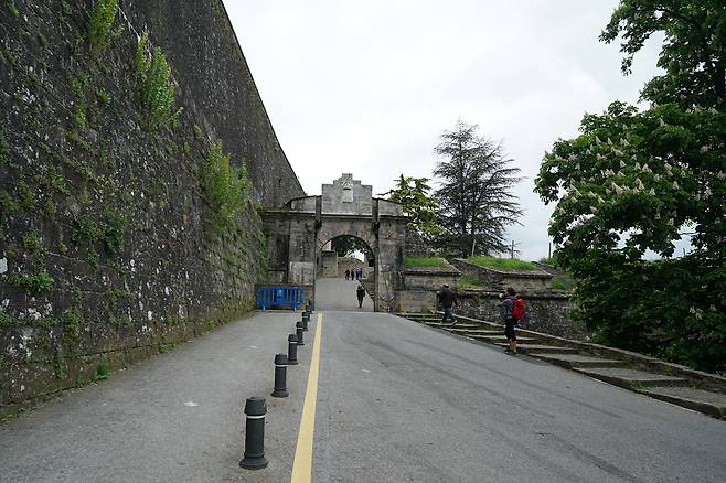 팜플로나 시내에 들어가려면 성을 통과해야 한다. 무척 높은 성 옆에 운치있는 길이 있어 마치 내가 잠시 중세 사람으로 돌아간 것 같은 기분이 든다. 성 안으로 들어가려면 두 개의 문을 통과해야 된다. 처음 보는 성문이 신기하고 멋져 보인다. 특히 두 번째 성문을 수말라카레이문이라고 하는데 이 문이 더 아름답다. 이 문을 '프랑스의 문'이라고도 하는데 중세 이후 프랑스에서 오는 순례자들을 위해 언제나 문을 열어두었다고 한다.