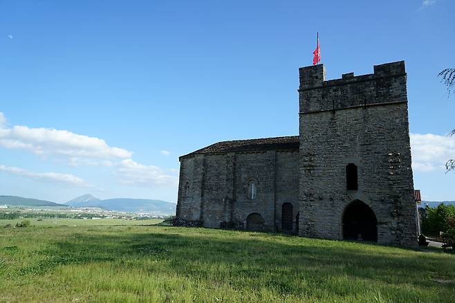 언덕 왼쪽에 성처럼 보이는 성당이 보인다. 망루에는 깃발이 펄럭이고 있다. 주변 푸른 초원과 어울려 너무 아름답다. 성당을 왼쪽에 두고 알베르게를 찾고 있는데 한국인 여성 한 분을 만났다. 그 분의 안내로 우리가 원하는 파밀리아 론칼 알베르게에서 쉬게 되었다. 이 알베르게는 깨끗하고 시설도 좋아 인기있는 곳이라고 한다.